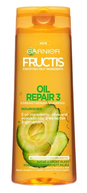 Le shampooing Garnier Fructis Oil Repair 3 nettoie efficacement le cuir chevelu, il lave parfaitement les cheveux et leur redonne leur beauté naturelle.