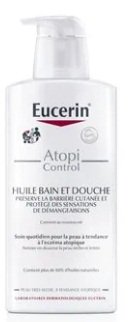EUCERIN AtopiControl Huile Bain et Douche est sans savon et enrichie d'une haute concentration en oméga-3 et oméga-6, pour nettoyer et apaiser en douceur la peau à tendance à l’eczéma atopique. Le nettoyant corporel pour les peaux sèches à tendance à l’eczéma atopique soulage les sensations de démangeaisons et aide à préserver la barrière naturelle de la peau. Même avec un lavage régulier, la peau est protégée contre la sécheresse et les sensations de démangeaisons.
