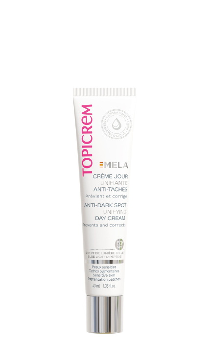 La Crème Jour Unifiante Anti-Taches MELA associe prévention et correction anti-taches efficace à une très haute protection UV et lumière bleue.