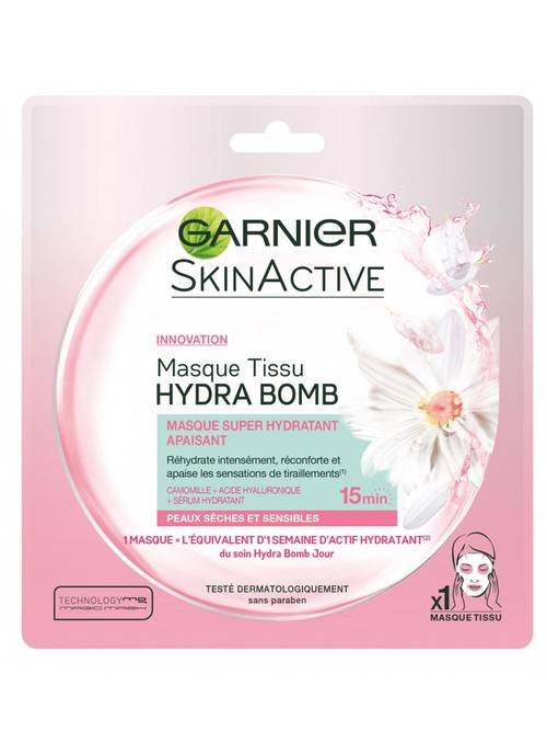 Masque en tissu hydratant à la camomille pour les peaux sèches et sensibles