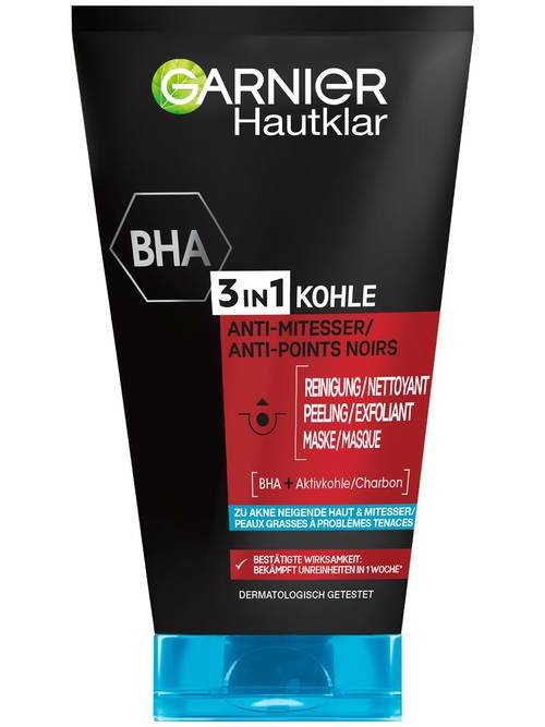 Le nettoyant, gommage et masque anti-points noirs 3 en 1 Garnier Hautklar peut être utilisé de trois façons.