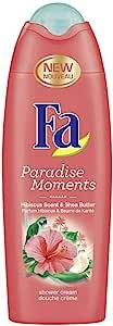 Gel douche Fa Women - Paradise Moments - 250 ml - La crème de douche Paradise Moments est une belle douche au beurre de karité nourrissant. La crème de douche Paradise Moments nettoie votre peau sans la sécher. Avec le parfum séduisant d'hibiscus PH neutre et testé dermatologiquement.