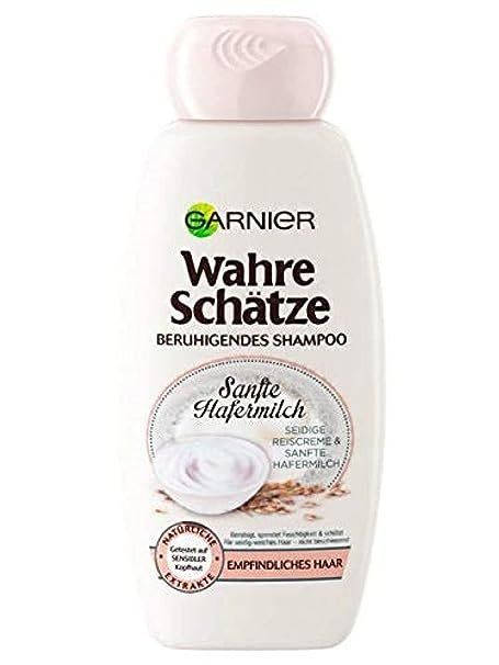 Nourriture apaisante sans les alourdir : le shampooing apaisant Garnier True Treasures Le lait d'avoine doux nourrit et dorlote intensément les cheveux sensibles - de la racine aux pointes. Le shampooing associe lait d'avoine doux et crème de riz soyeuse dans une formule de soin onctueuse et douce pour des cheveux particulièrement souples. Le lait d'avoine est connu pour son effet apaisant sur le cuir chevelu sensible et qui démange, tandis que la crème de riz a des propriétés nourrissantes, protectrices et hydratantes.